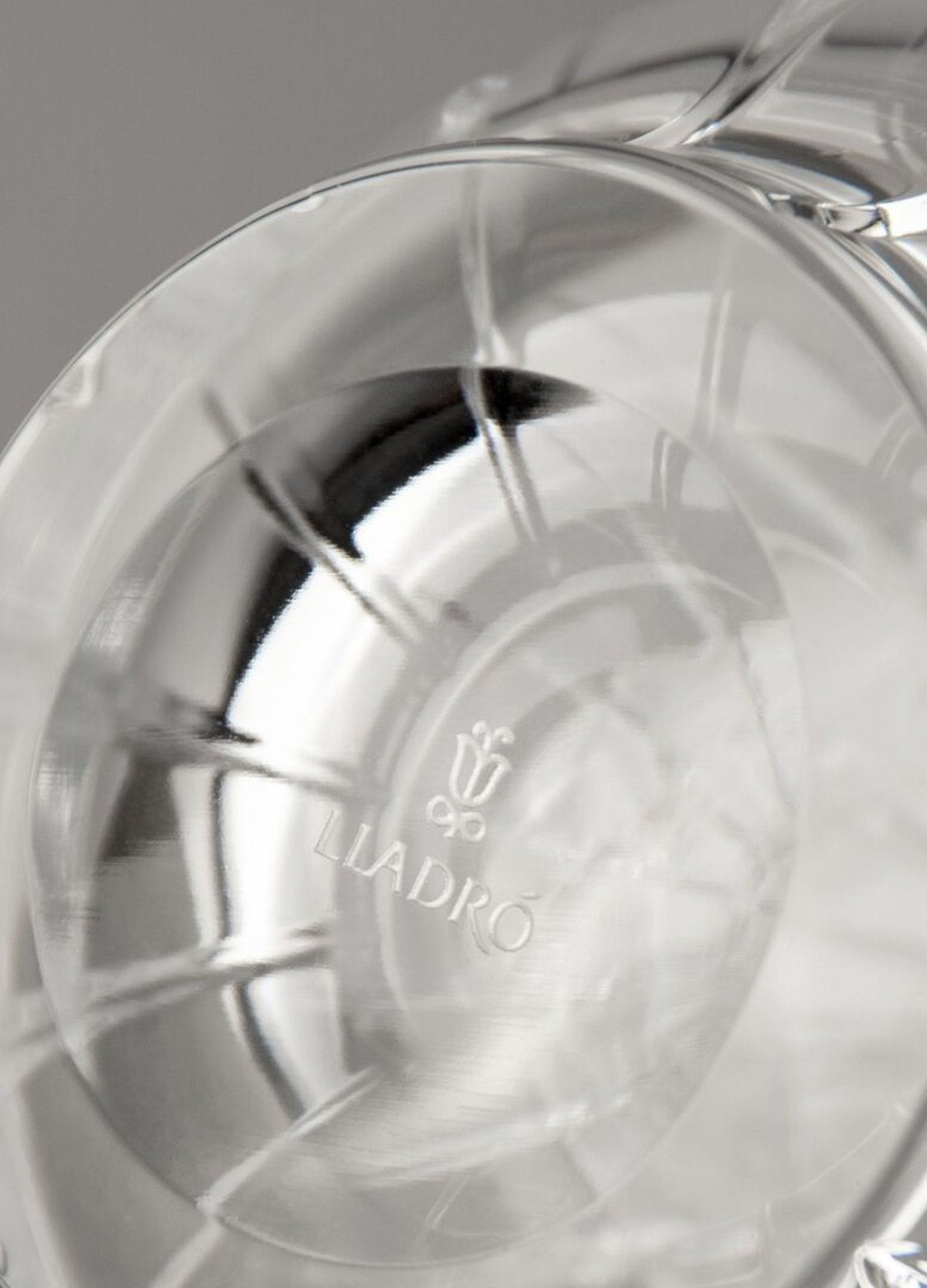 - This original crystal bottle stands out for the stopper made in glazed porcelain and decorated with intense white, black and red tones with details in golden luster. A piece ideal for gifting, both functional and decorative. Handcrafted in the Lladró workshops in Spain.