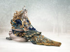- Limited edition, gloss finish porcelain sculpture of a woman with beautiful white wings, embellished with blue and white enamel.