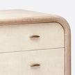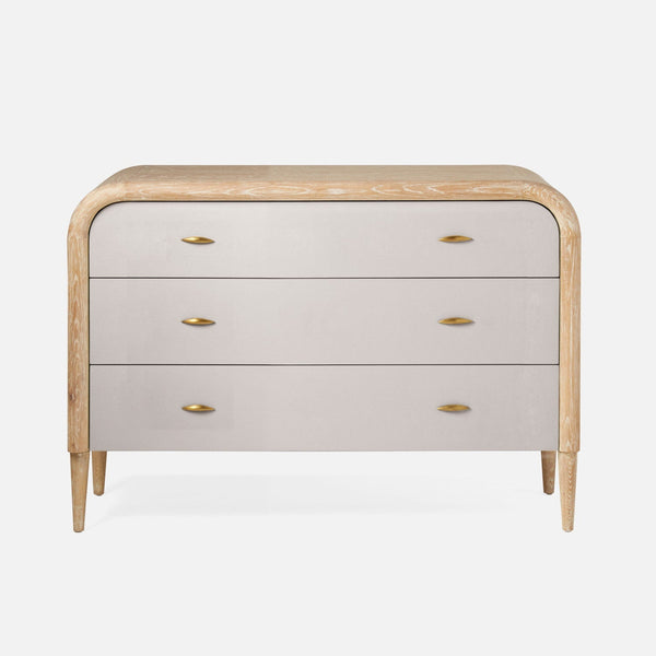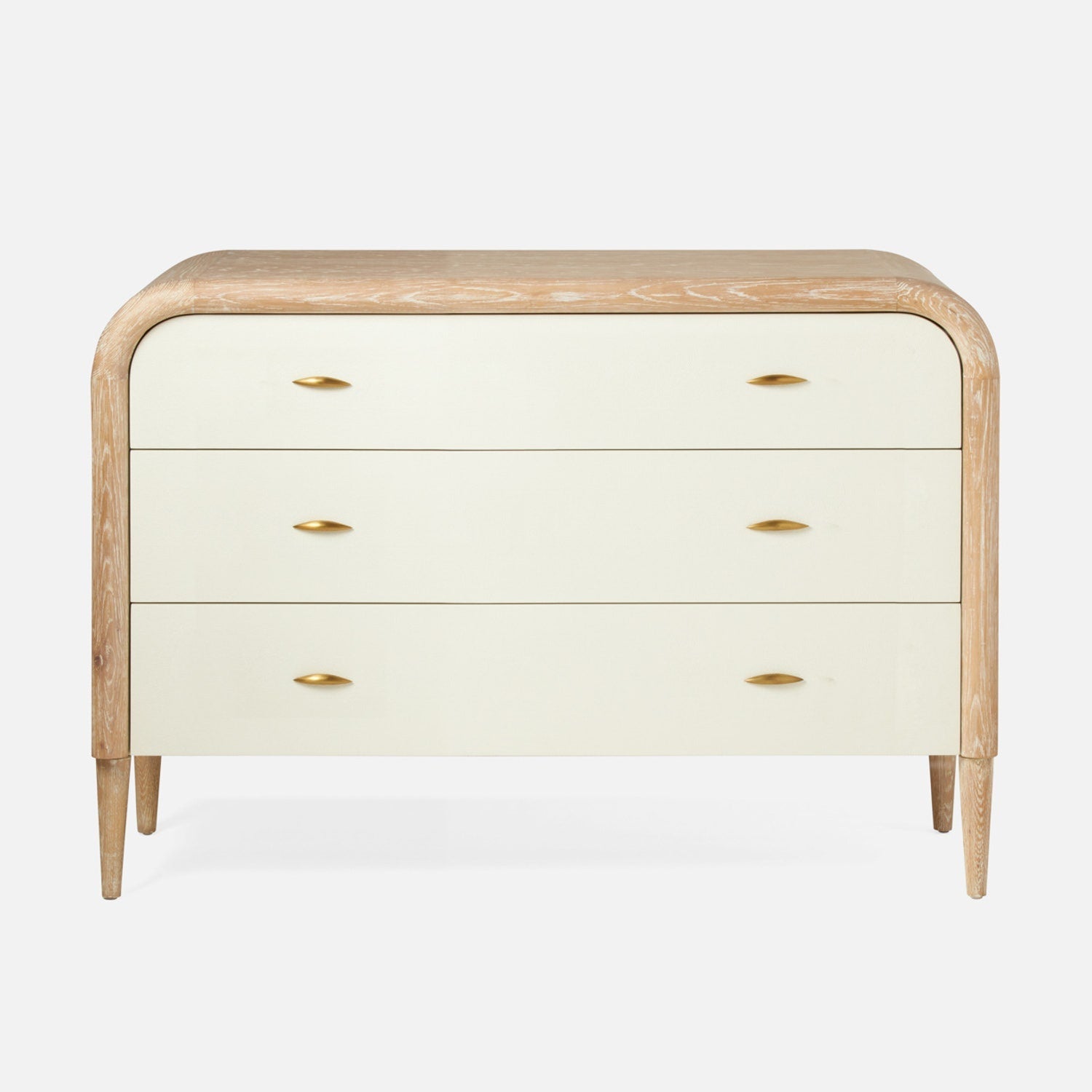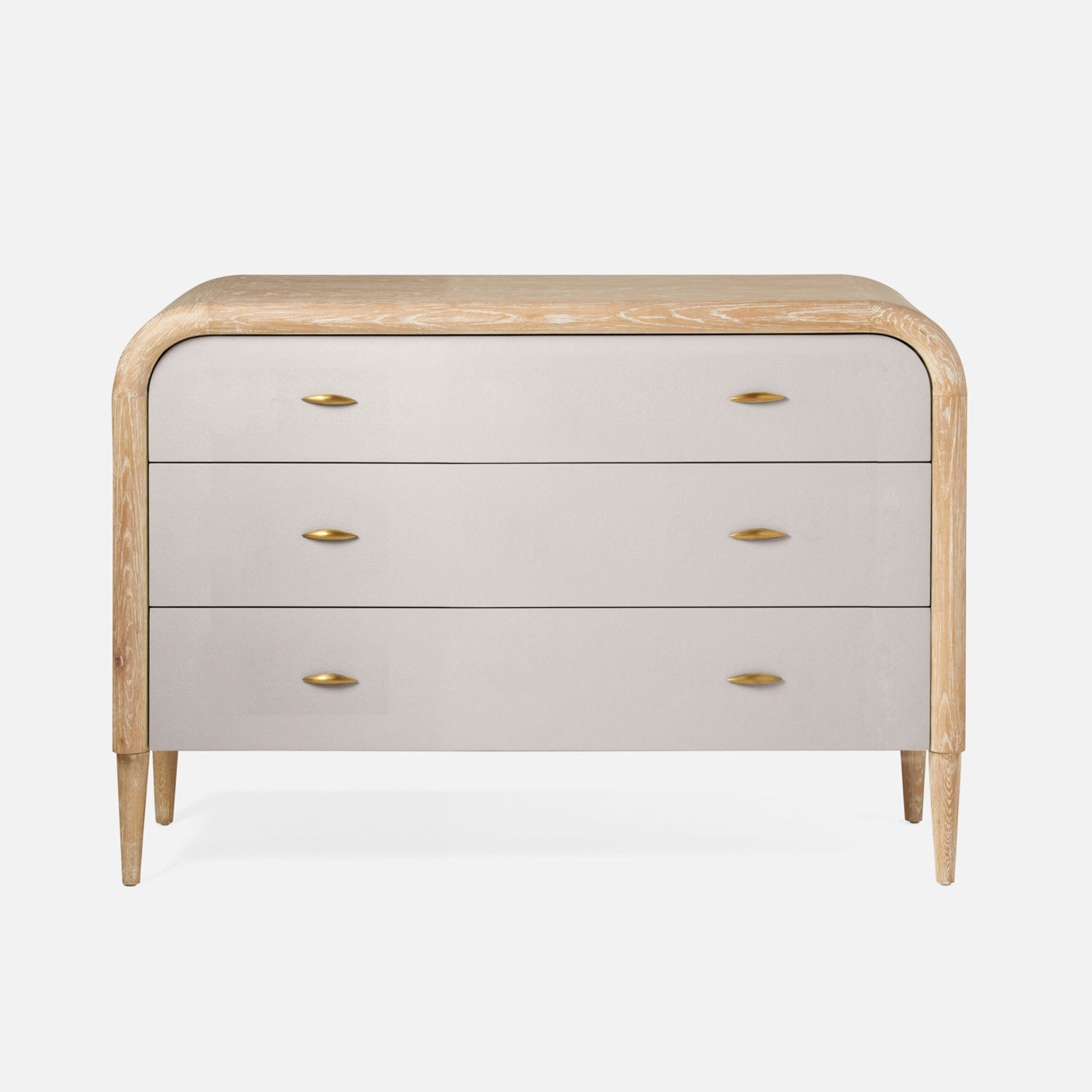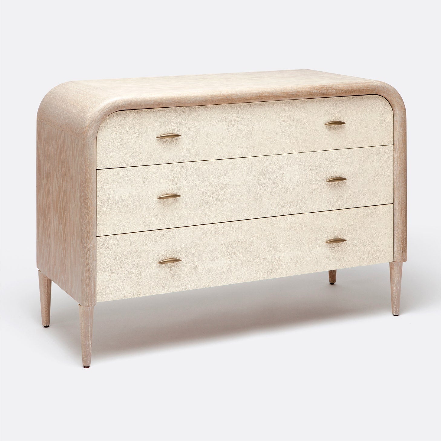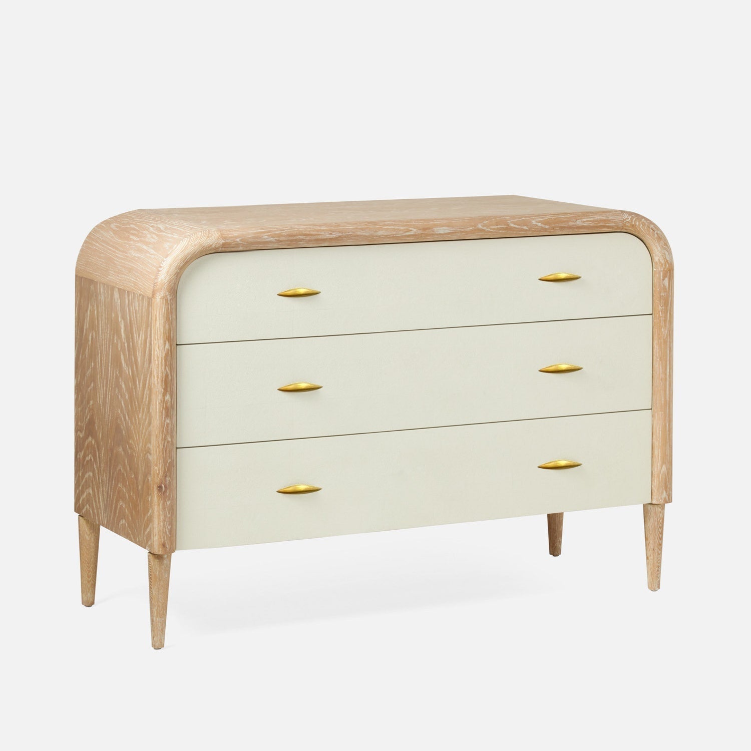 - The Pierres rounded frame takes its cue from the late 60s, with whitewashed oak and faux shagreen drawer panels making it a contemporary beauty.
