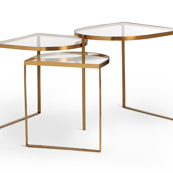 - This table features a unique configurable design: Its three glass sections may be adjusted from the center pivot point to create either a cocktail or side table to suit your design needs.