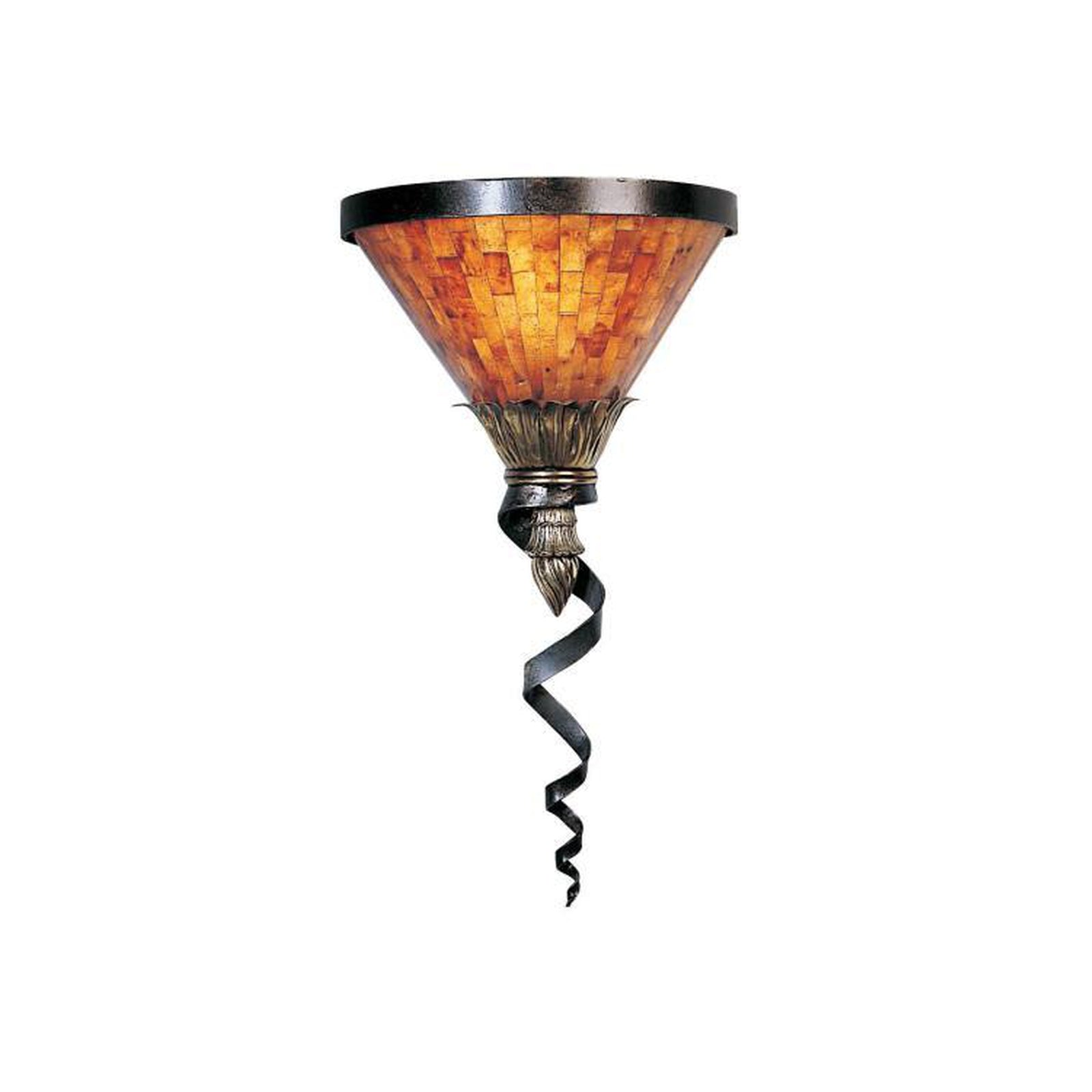 - Black Finished Iron and Antique Brass Wall Sconce with Young Penshell Shade.