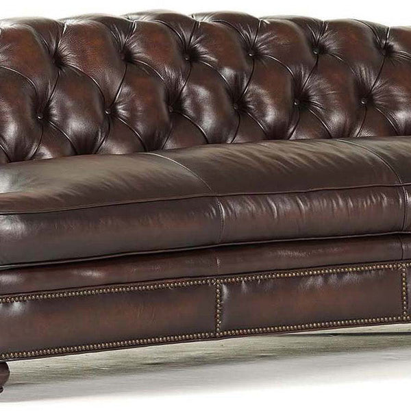 - Washington Sofa in Brandy Almond (protected) / Wipe Off Leather Upholstery, Tufted, Tack Accents