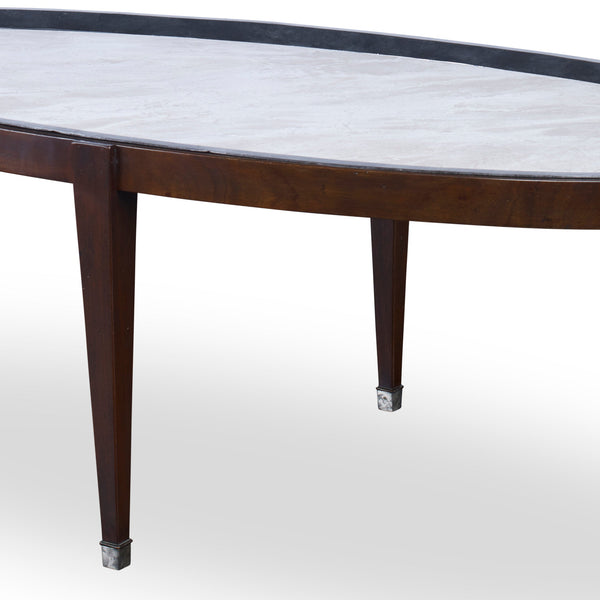 - Dark Walnut Finished Winthrop Cocktail Table with Desert Tan Scagliola Top, Metal Accents