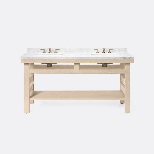 - Each vanity is crafted from warm acacia wood with rounded edges for a clean modern look.
