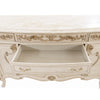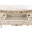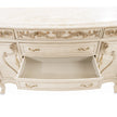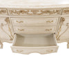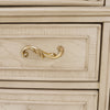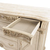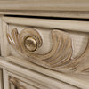 - The top drawers are accented with antique platinum leaf finished designs, adding a touch of glamour to the piece.