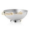 - Bowl 12" Dia. ; Hand Textured Stainless Steel, Natural Brass, White Enamel
