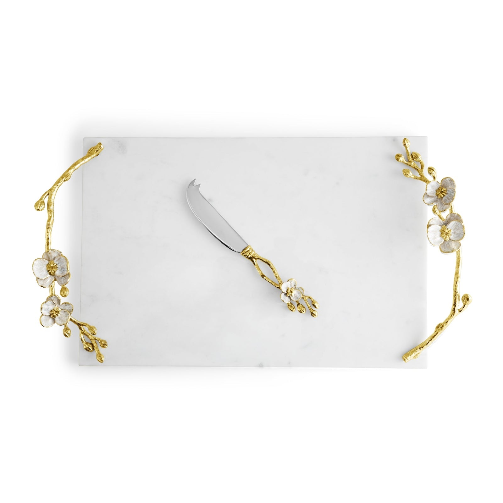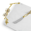 - Rendered with white enamel over golden brass, each bloom glistens with quiet vibrance.