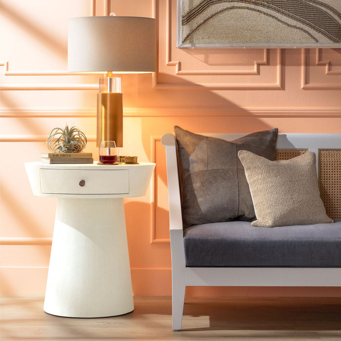 - The round tapered top and base make it a versatile piece with a practical silhouette.