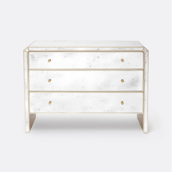 - Clipped corners add style and a subtle Art Deco feel to the ultra-functional dresser, nightstand, and nesting tables; our Palladian Silver finish is the final touch, giving the pieces the warm undertones of unpolished sterling.