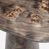 - This mappa burl coffee table catches the eye with swirling grain patterns and a leg tapered with an oblong-shaped top.
