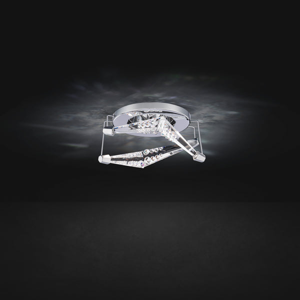 Stunning Schonbek Radiance prisms descend from a central canopy, creating an inner dynamism of lines, angles and planes in perpetual motion, throwing luminous beams in different directions.