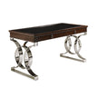 - Black leather top framed by a stainless steel inlay and rosewood rim.