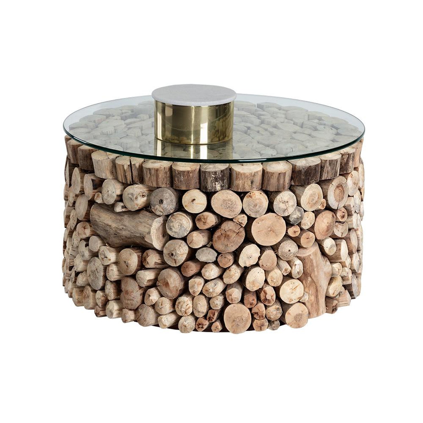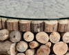 - Each side table is uniquely handcrafted with driftwood pieces and finished with an tempered glass top.