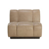 - Fully upholstered in our sahara sand aniline leather with a contrasting dark brown rubberwood base for a handsome addition to any space.