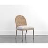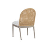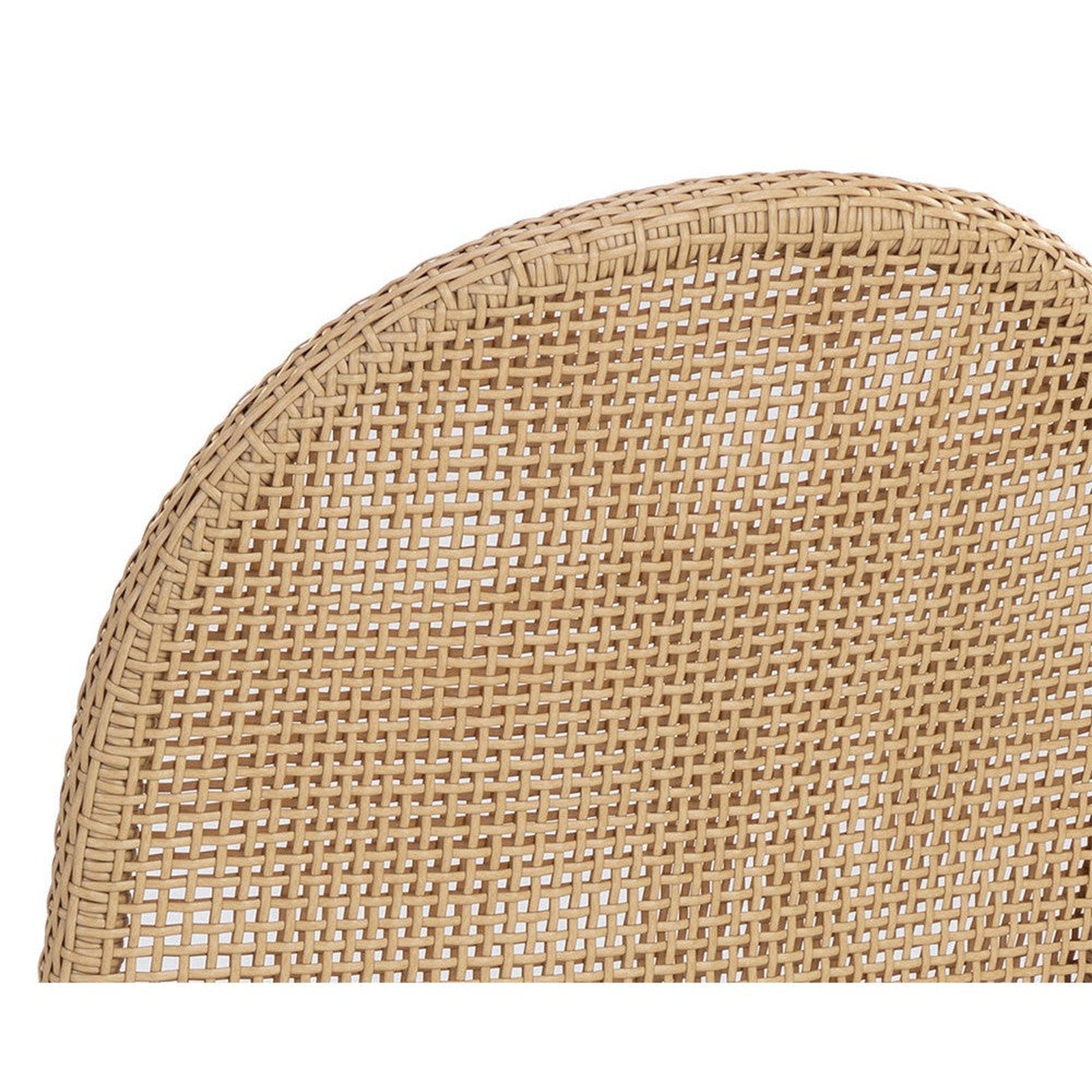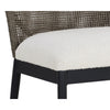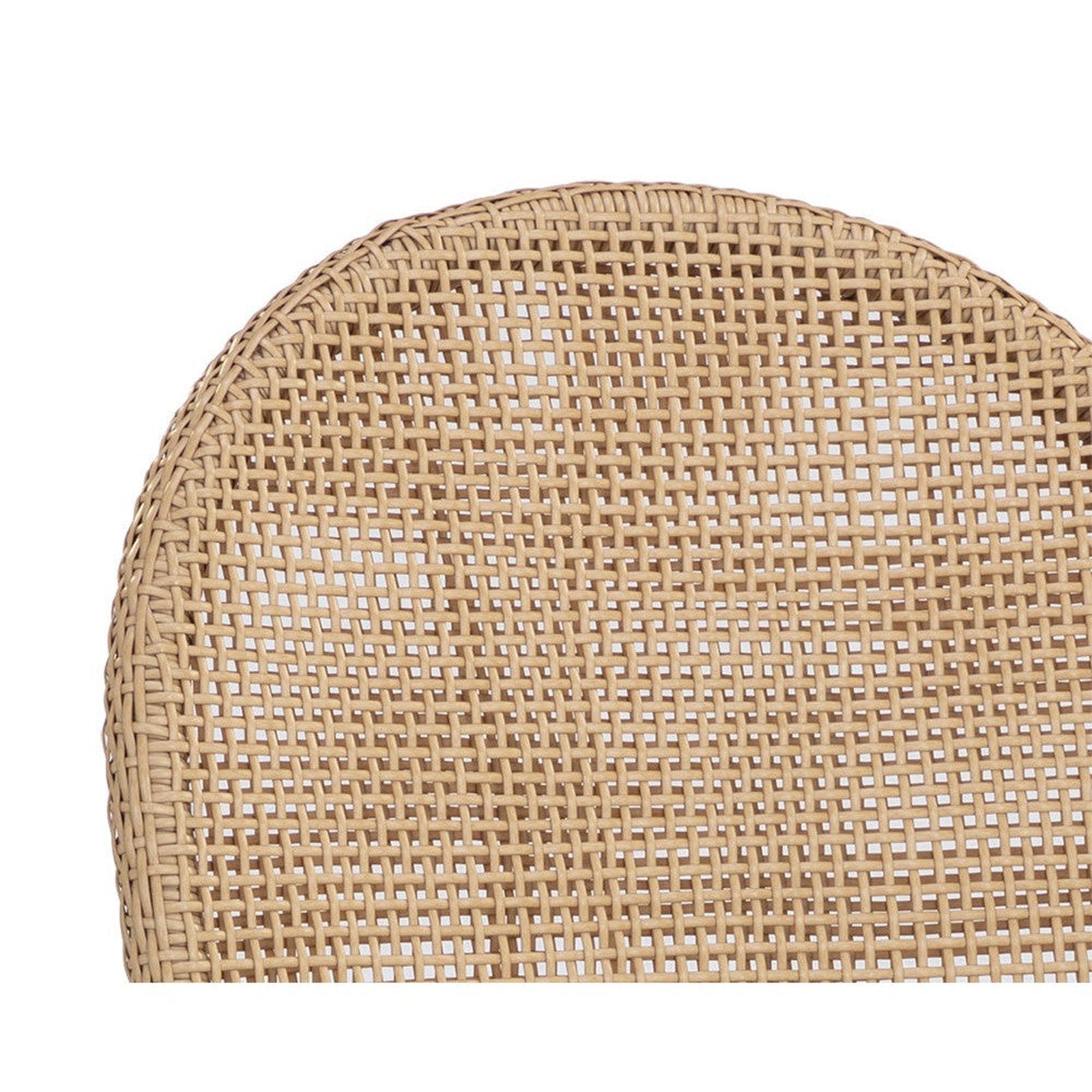 - A softly curved back made with ore grey and natural cane wicker weave pairs beautifully with our soft louis cream outdoor boucle performance fabric, exuding both comfort and style.