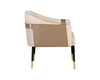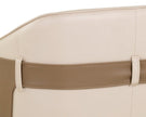 - A unique barrel back lounge chair upholstered in supple napa beige leather and accented with a contrasting exterior in napa tan.