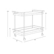- Built for durability, this bar cart features a powder-coated steel frame with a rustic bronze finish.
