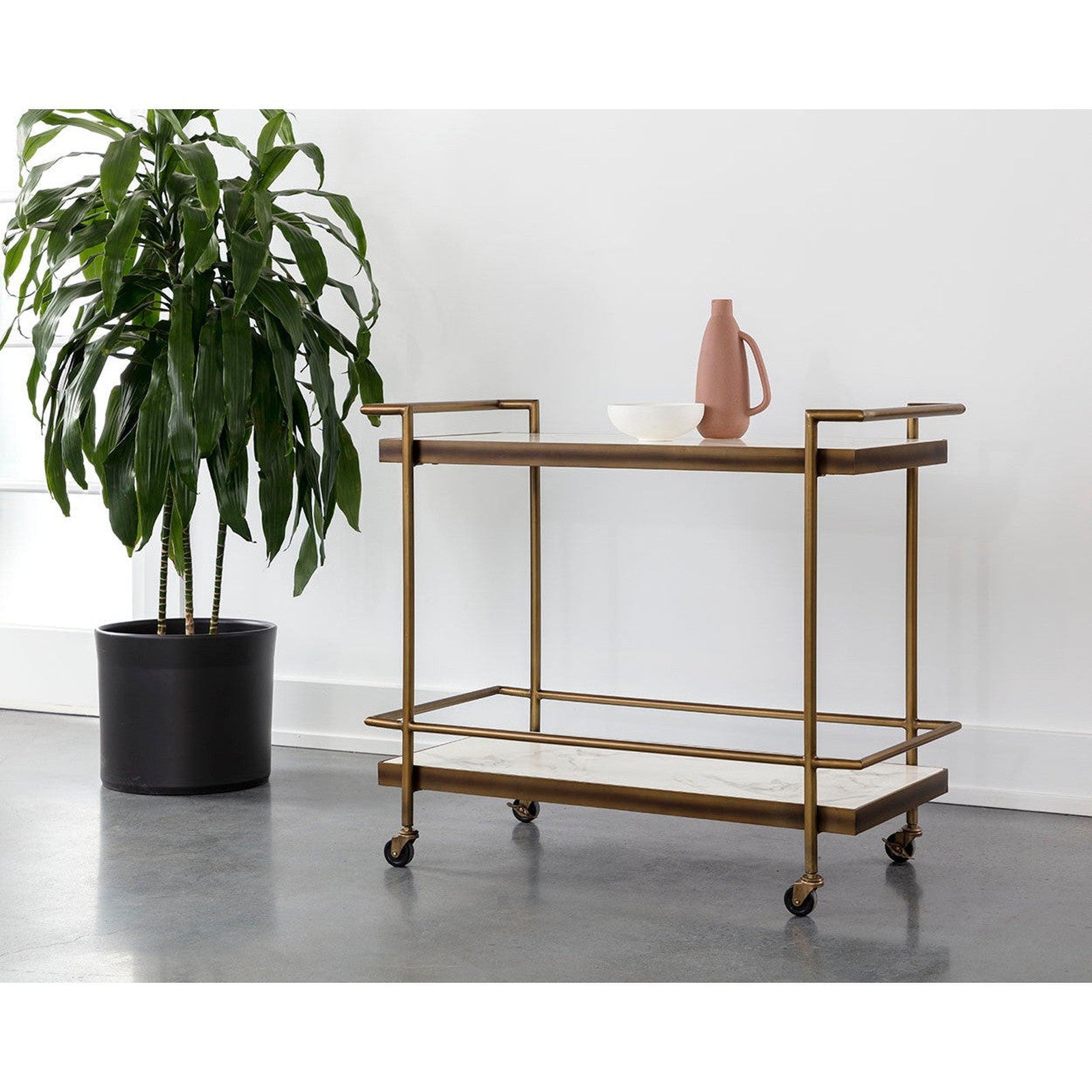 - Elegantly display your spirits or drinkware with the Contardi Bar Cart.