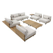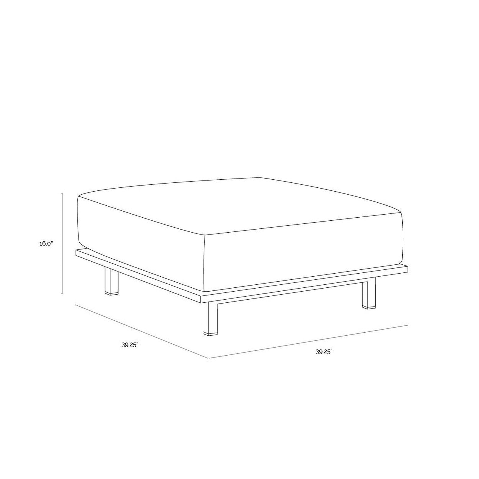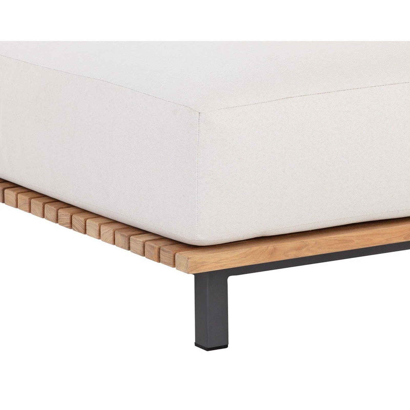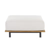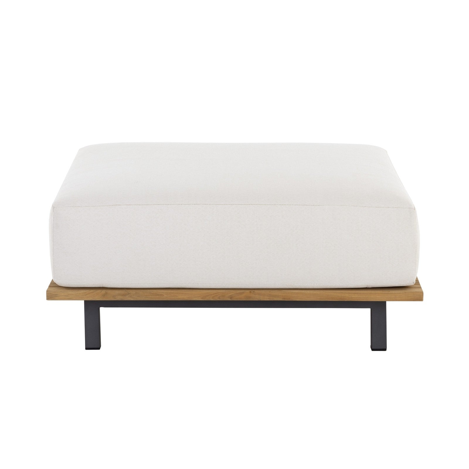 - This modern ottoman features upholstery in palazzo cream fabric, atop a natural teak wood frame.
