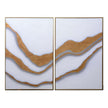 - This diptych style painting features dramatic gold strokes resembling organic marble veining, creating a stunning visual effect.