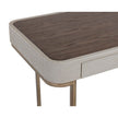 - Upholstered in cream faux leather with a brown oak veneer tabletop that is sure to impress.