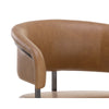 - Stocked in smooth milliken cognac faux leather and completed with a cantilever frame in a gunmetal stainless steel finish.
