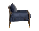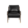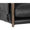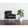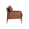 - Upholstered in shalimar tobacco and cortina black leather with dual buckle flap detailing on the armrests.