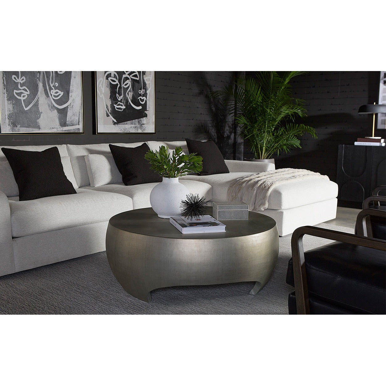 - The Tarsus Coffee Table exudes industrial chic with its metal look and sculpted design.