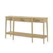 - The handcrafted Balboa Console features a sophisticated tapered silhouette against three drawers and a shelf.