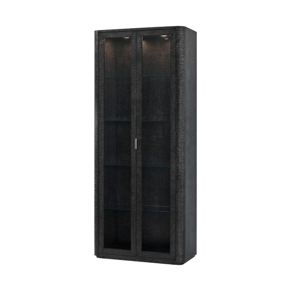 - The Kesden Curio Cabinet features an exquisite contrast of glass against a rich, Tamo ash burl veneer.