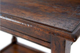 - A mahogany and reclaimed oak occasional 'Joynt' table, the planked rectangular top with a moulded edge, above a panelled frieze with gently splayed turned legs terminating in block feet joined by a planked tray undertier.