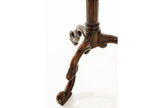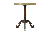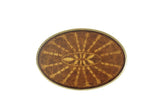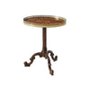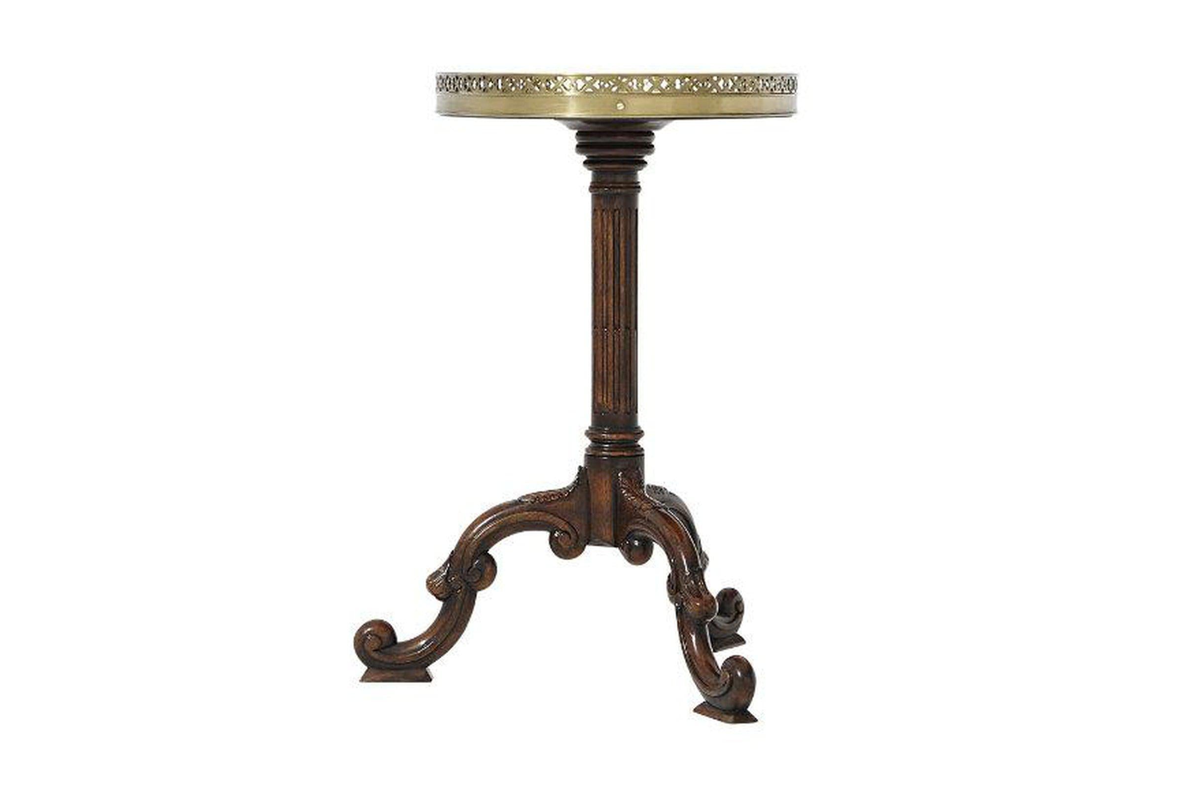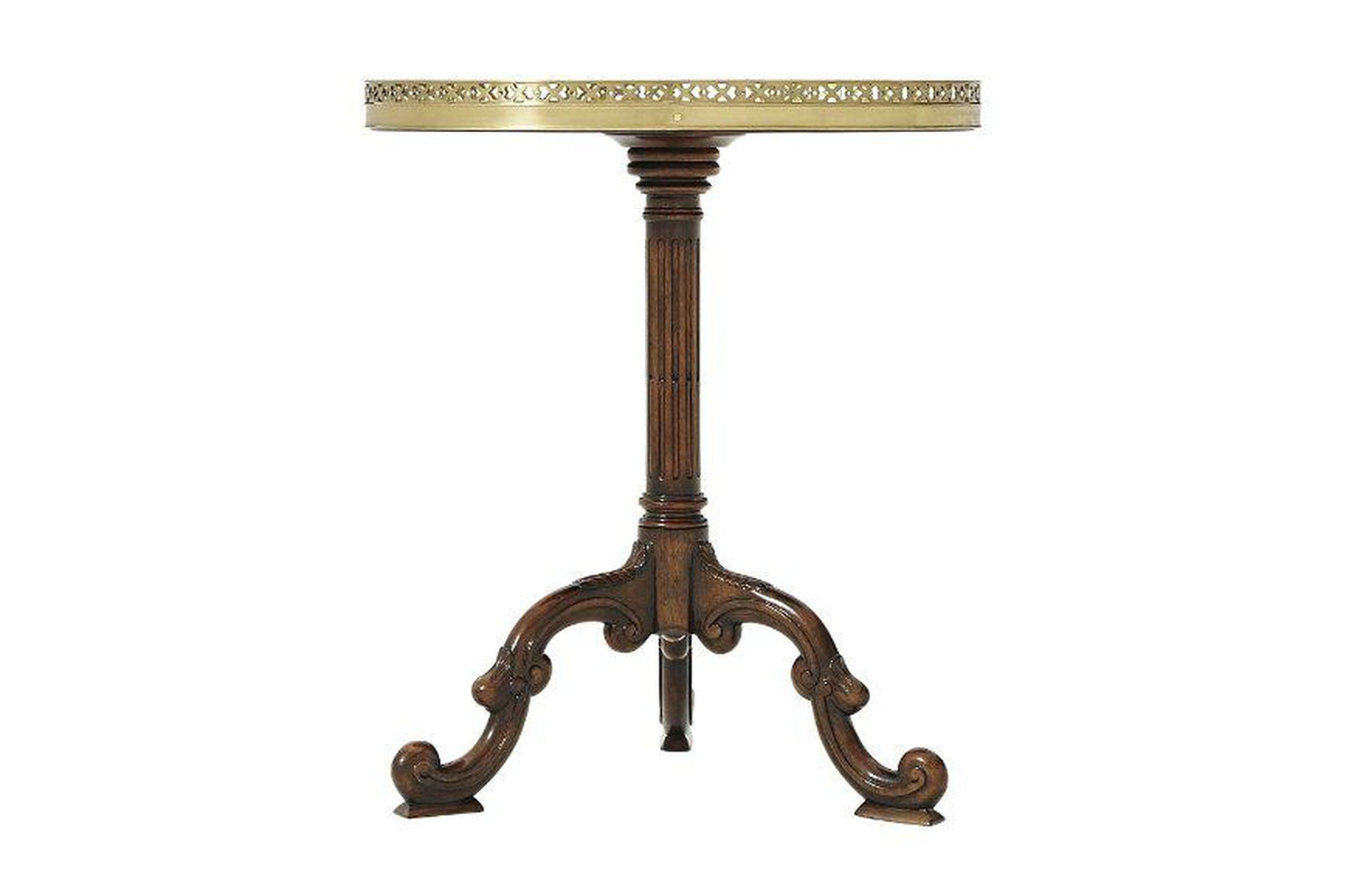 - A mahogany and burl sunburst parquetry oval lamp table, with brass gallery and fluted column, on ‘C’ scroll legs. The original George III.