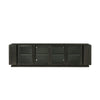 - This Media Console Boasts a Solid Oak and Veneer Construction and Rests on a Plinth Base.