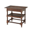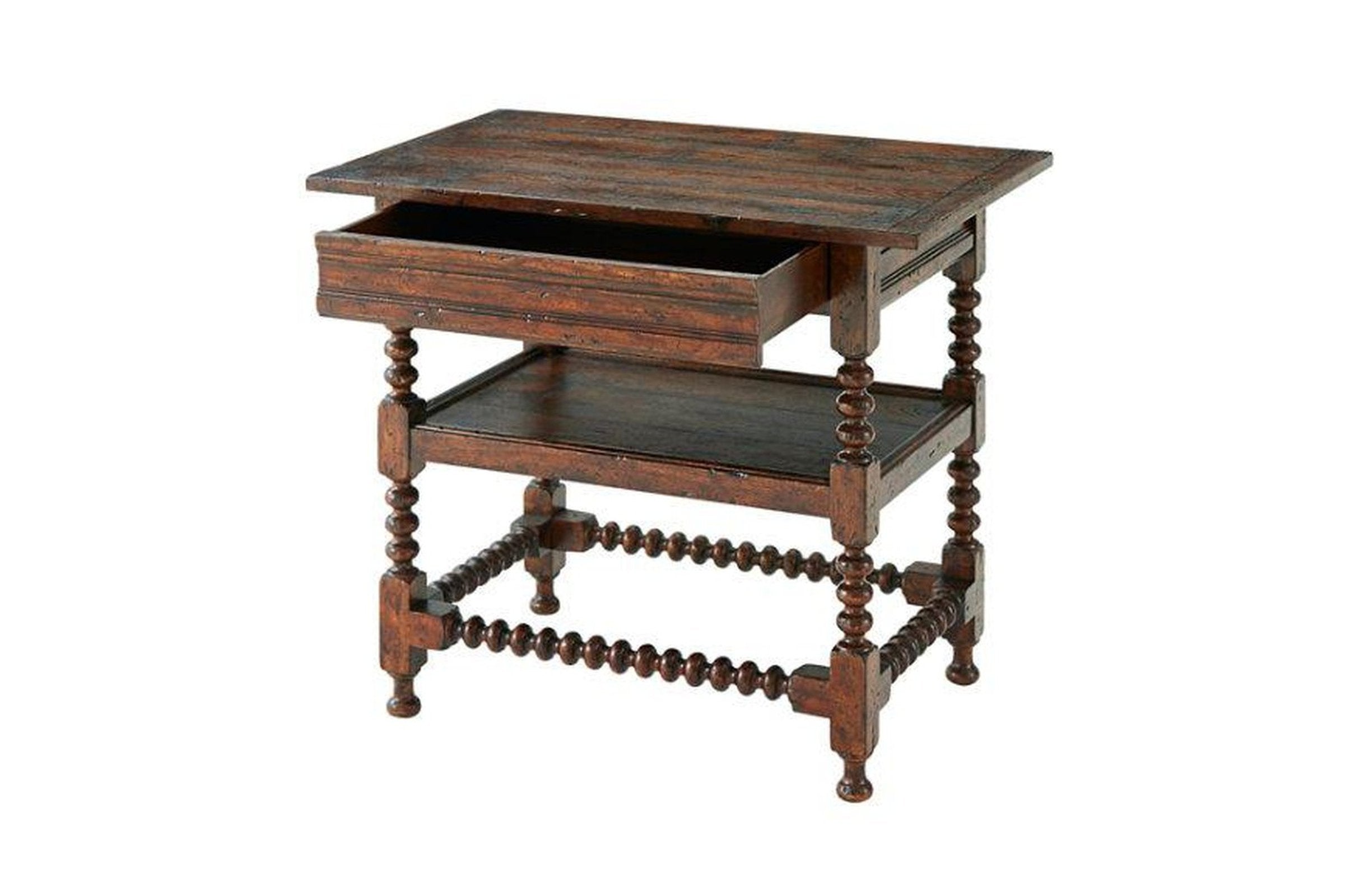 - A mahogany and reclaimed oak side table, the rectangular planked and breadboard top above a moulded frieze, on bobbin turned and block legs joined by a boarded tier and bobbin stretchers below.