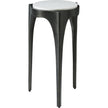 - The raised marble top is set upon an organic three legged sculptural design and is elegantly featured in a dark Romulous finished metal.