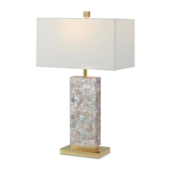- Viola Table lamp with Polished Brass and Mother of Pearl Details with Linen Rectangular Shade