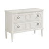 - The decorative overlay molding on the two drawer fronts and long tapered legs introduce a fresh design element.
