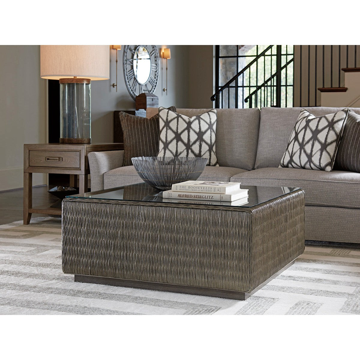Tommy Bahama Home Cypress Point Seawatch Woven Cocktail Table Tempered Glass Top