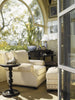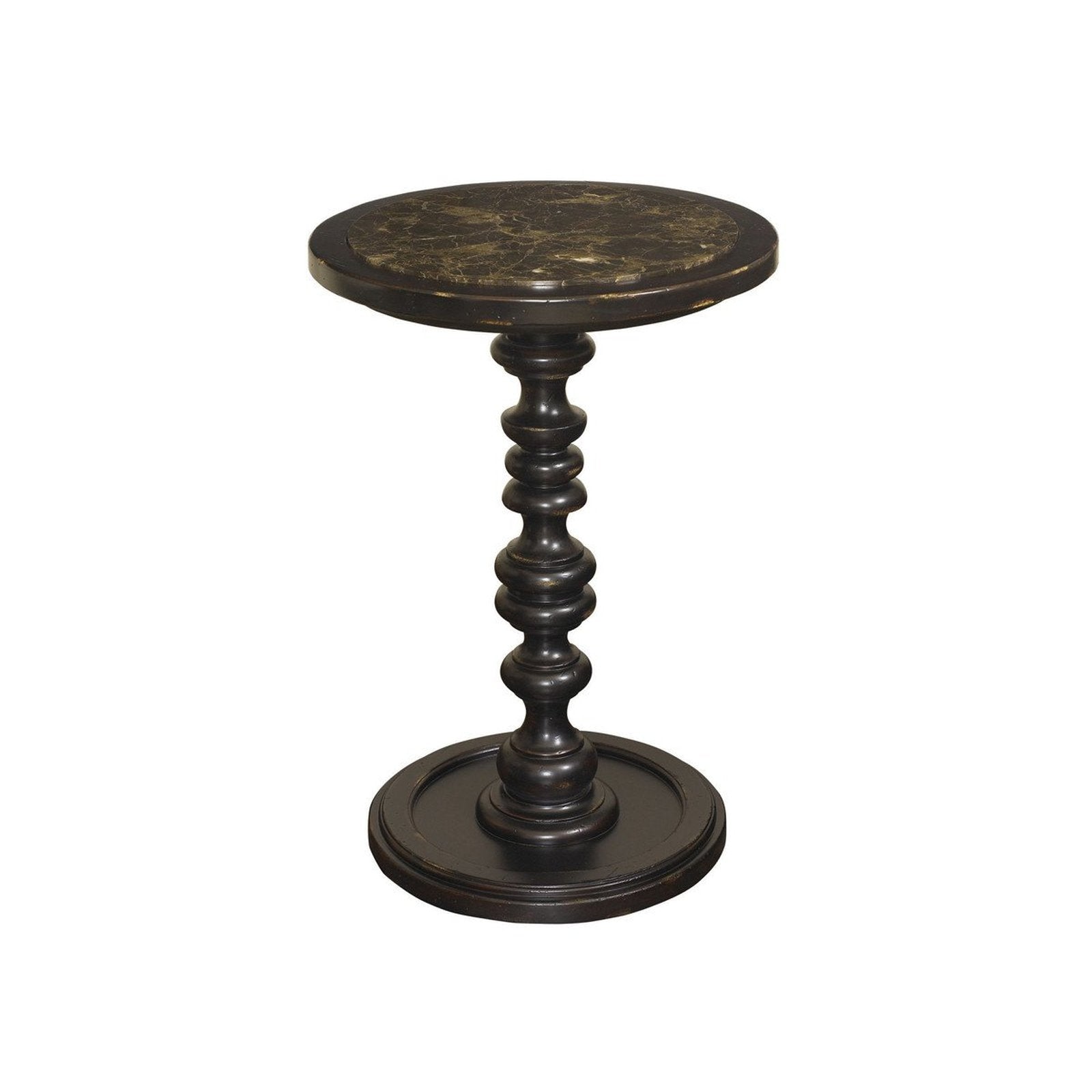 - The gorgeous turned pedestal supports a wood-framed stone top, the perfect place for your drink or the latest travel tome.