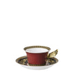 One of the first sets of the collection "Rosenthal meets Versace”, the décor "Medusa” by Gianni Versace on the form of the "Ikarus” mirrors the matchless rich, color intensive world of Versace. Central eye-catcher of this collection is a glorious gold colored head of Medusa, an unmistakably Versace emblem, framed by expressive baroque ornaments. The centrally placed head of Medusa decorates all cups, pots, service and breakfast plates of the collection "Medusa”. Varacious aristrocratic colors, bright red, precious gold and black with lavish delicate designs and ornaments give the head of Medusa a colorful elegant framework.