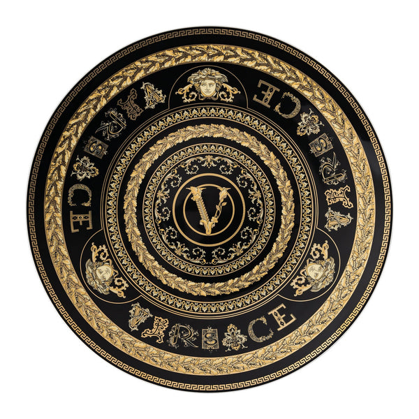 - Versace Virtus Gala Black Showplate - Round, Porcelain.