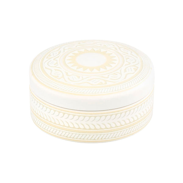 - Elegantly decorated in white with ivory colored relief, it is perfect for special occasions and for everyday use, thanks to its practical and contemporary shapes.