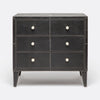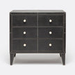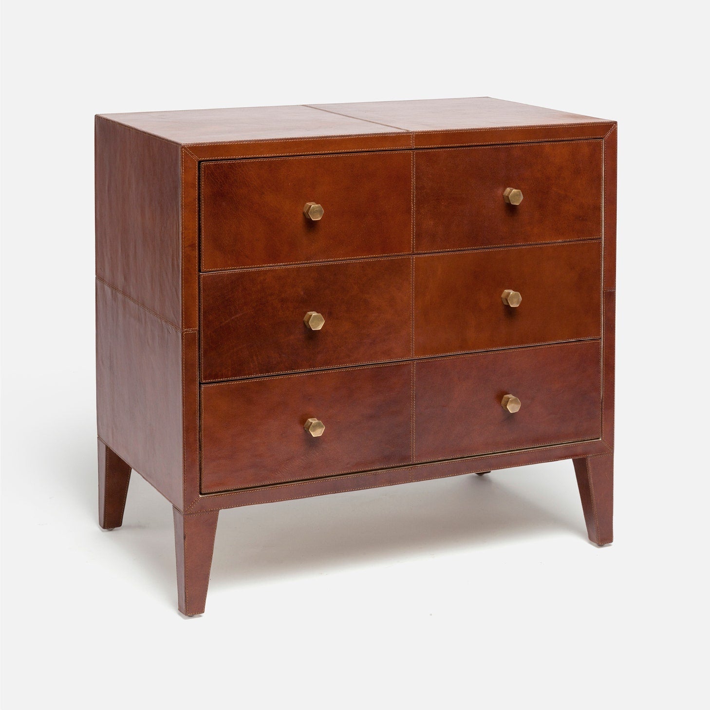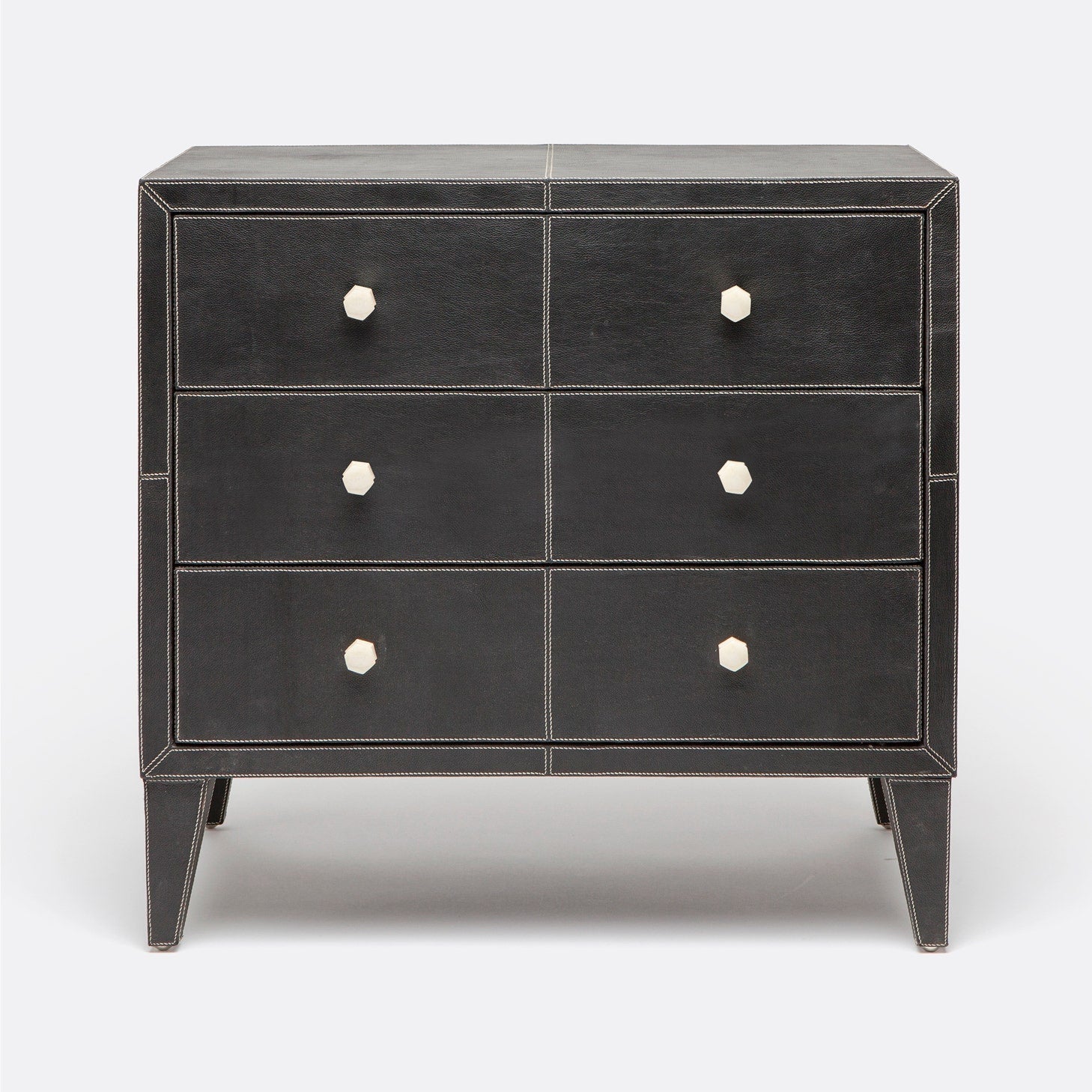 - Hexagonal hardware lightens up each piece's tailored look while canvas lines all of its three drawers.
