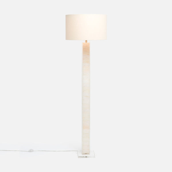 - Hand placed mother-of-pearl shines on the slim rectangular column of our shell-covered Zilia-a clean and modern floor lamp with a textural, feminine finish.